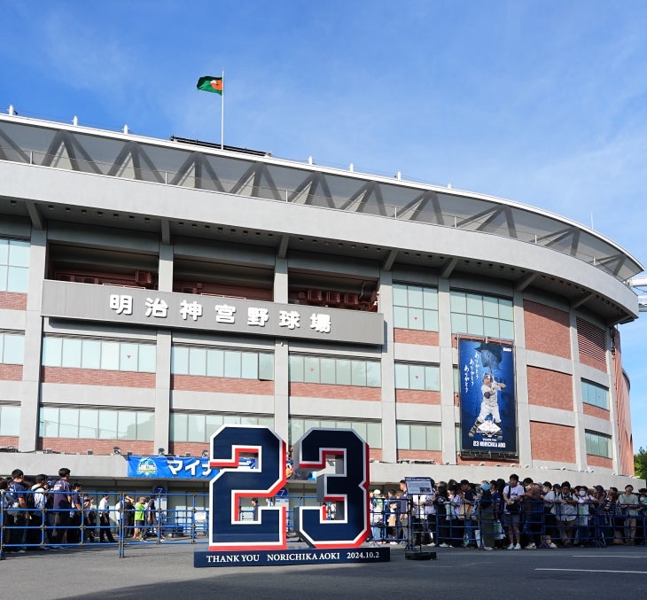 9月13日(金)、青木宣親選手が今シーズン限りでの現役引退を発表。 同日に引退会見を開き「本当に幸せな野球人生だった」と、21年間のプロ生活を振り返りました。 10月2日(水)広島戦(18:00 試合開始、神宮球場)では、青木宣親選手の引退試合を開催。 試合後の引退セレモニーの他にも、来場者に対する応援ボードのプレゼント、ファンの皆さまから募集したメッセージの展示など、様々なイベントを実施しました。