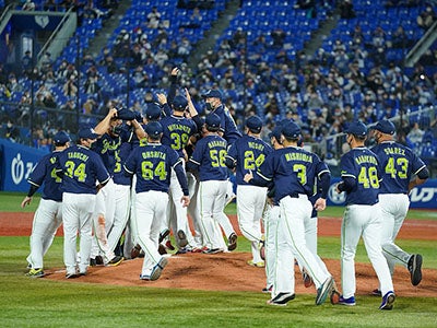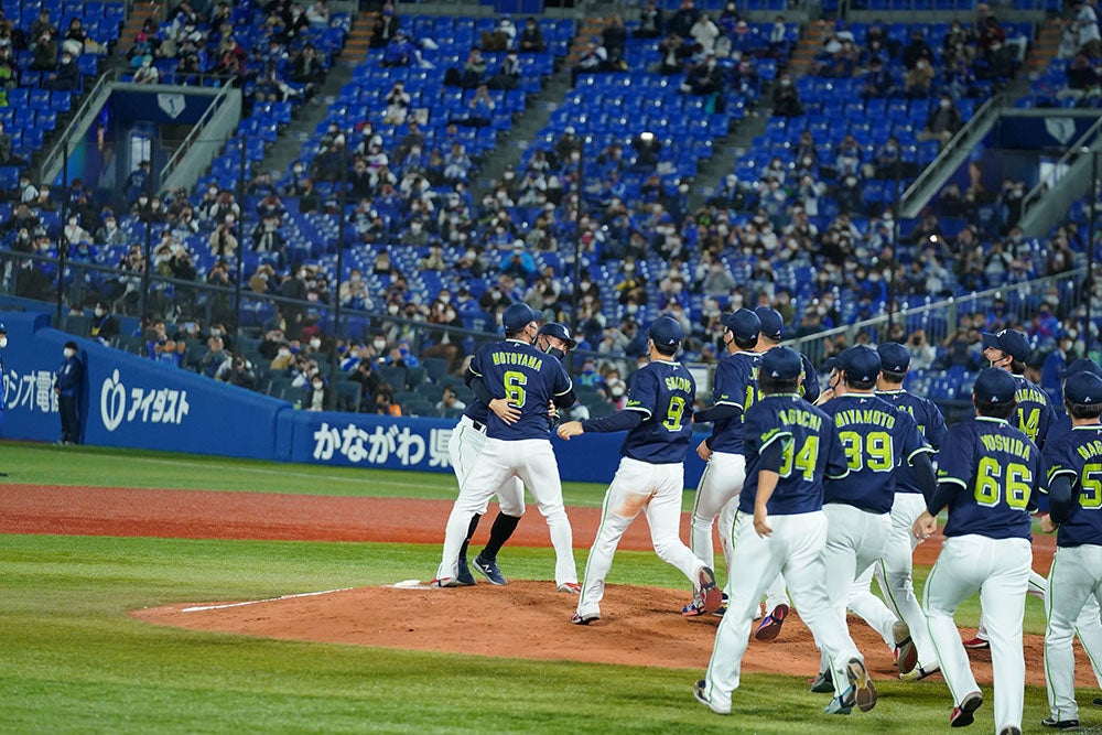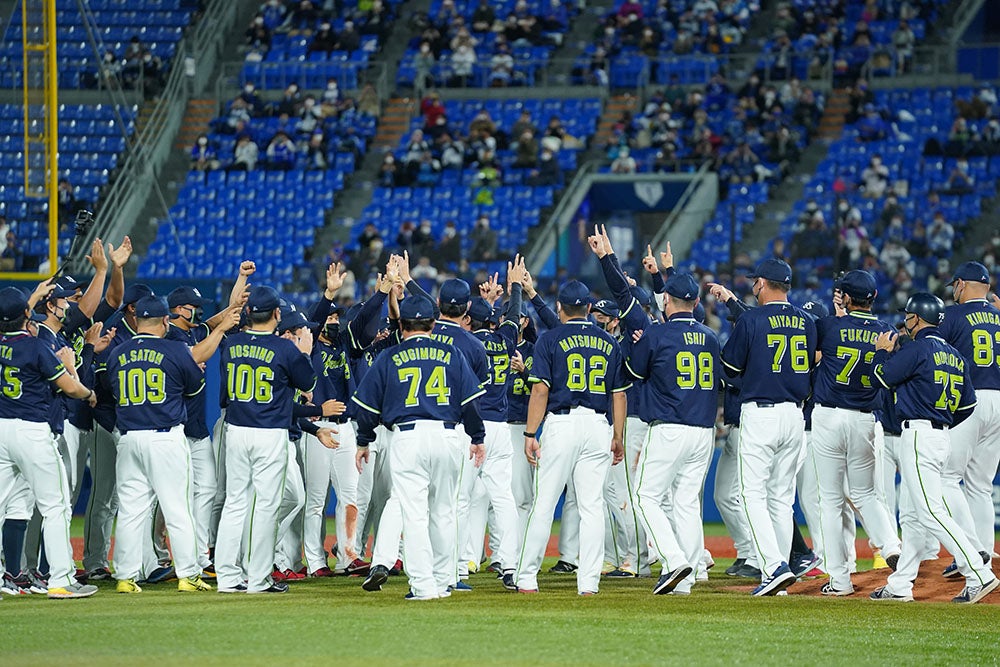 山崎晃大朗選手が決勝タイムリー!チーム一丸で今シーズン神宮初勝利を掴む!