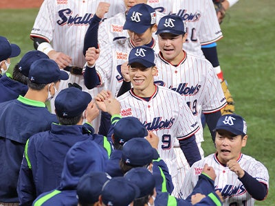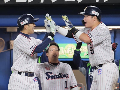 12日(金)、神宮球場での読売ジャイアンツとの2021 JERA CS セ ファイナルステージ第3戦。0対1の7回、青木選手の2点タイムリーで逆転すると、8回に追いつかれるも、最終回は守護神・マクガフ投手が三者凡退に封じ、2対2の引き分け!SMBC日本シリーズ2021進出を決めました!!