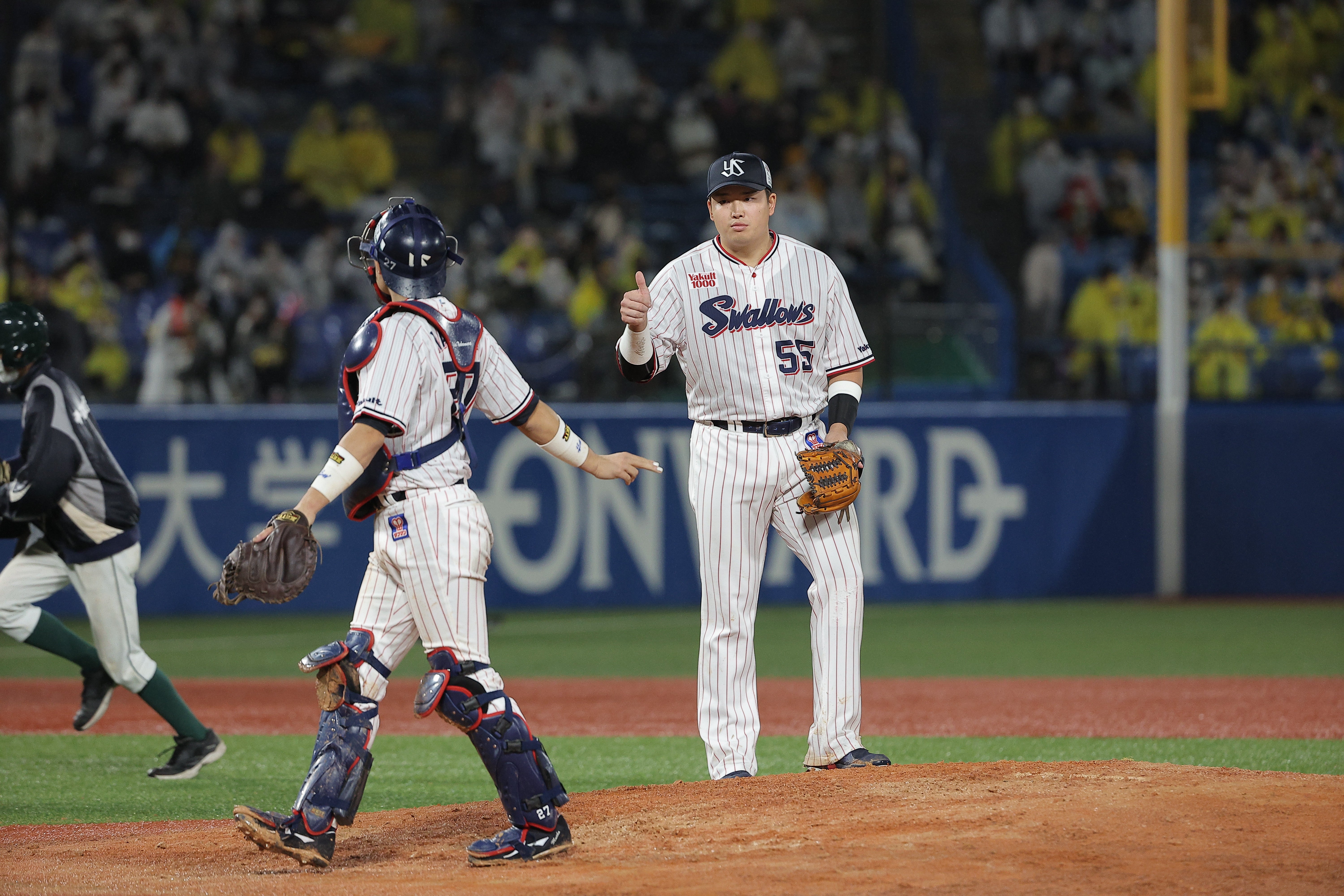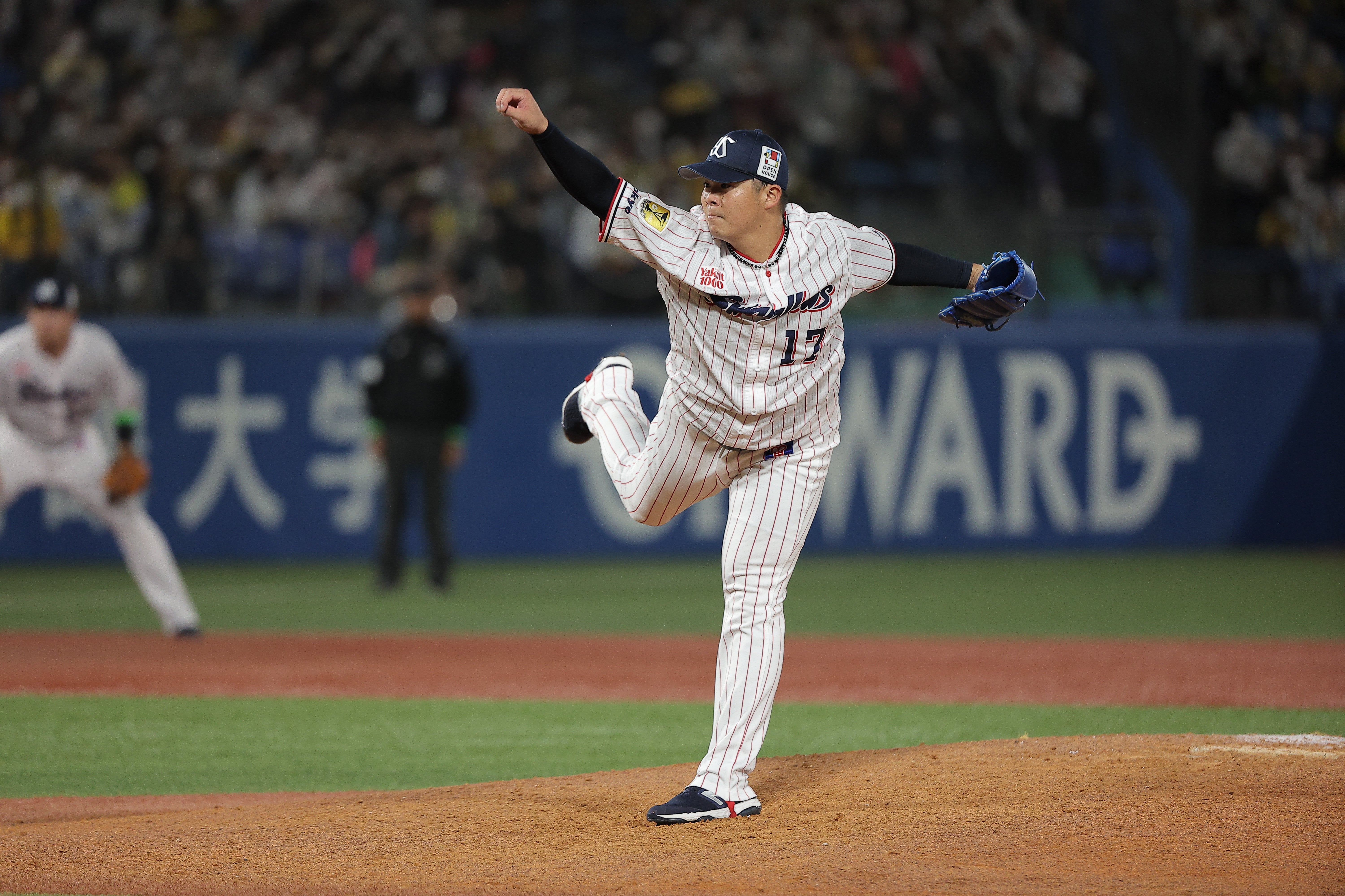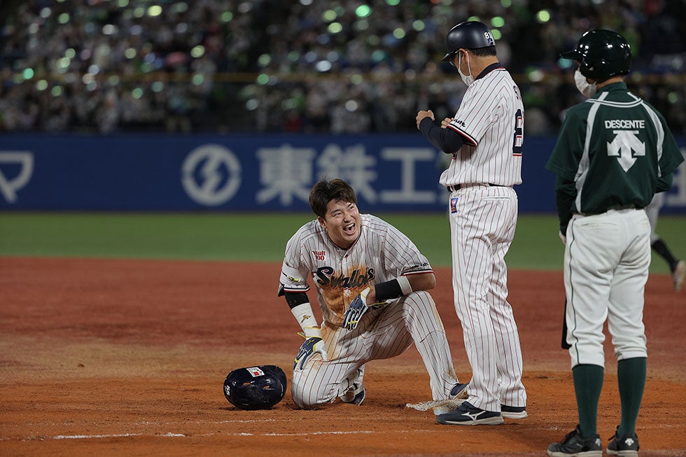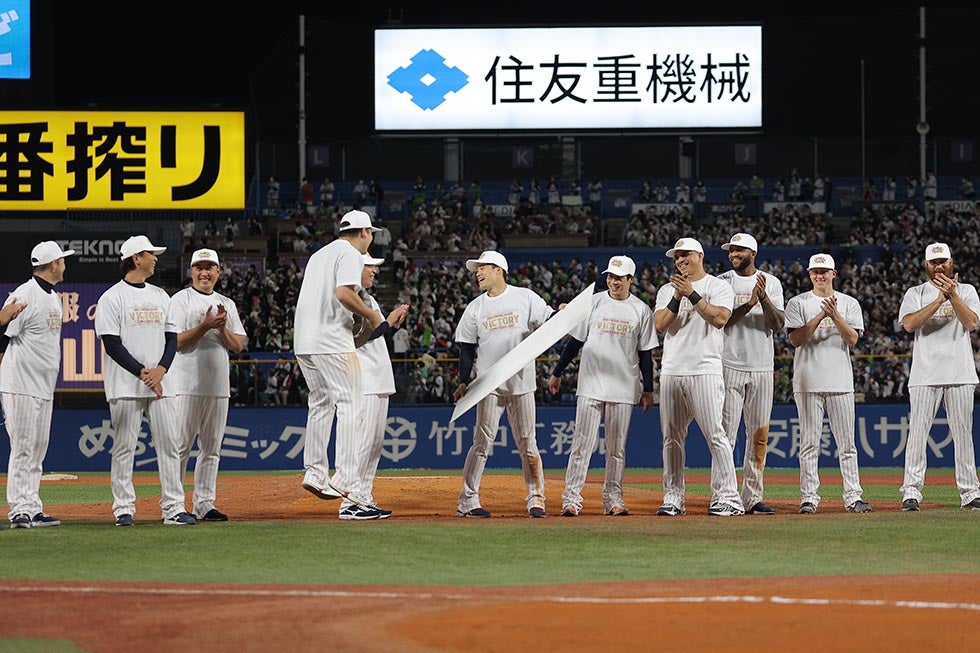 小川泰弘投手が7回1失点の力投、オスナ選手が初回に先制の3ランの活躍!CS初戦を快勝で飾る!