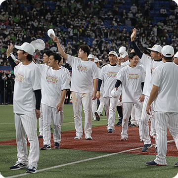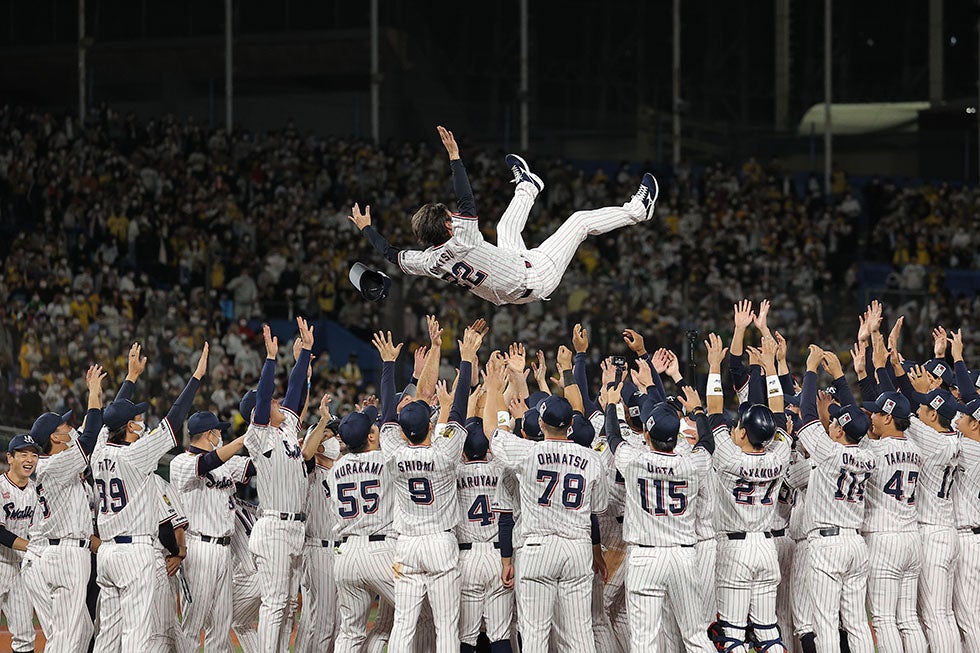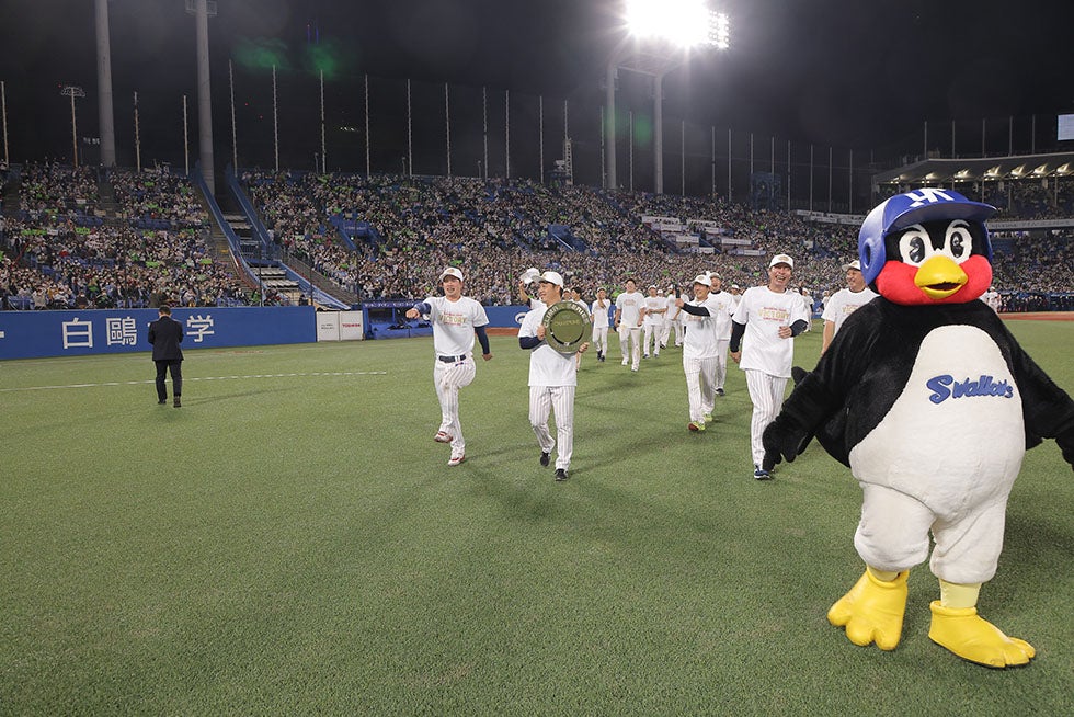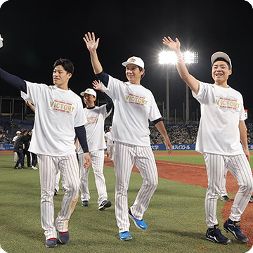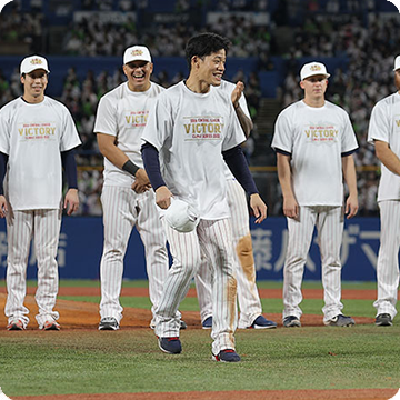 14日(金)、神宮球場での阪神タイガース戦。0対3の7回、村上選手のタイムリー内野安打などで、5点を奪い逆転すると、8回は山田選手のタイムリー二塁打で貴重な追加点を奪います!6回以降は鉄壁のリリーフ陣が無失点に封じ、6対3で逆転勝利!SMBC日本シリーズ2022進出を決めました!