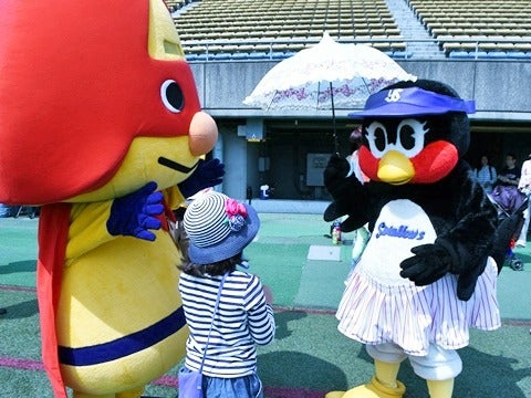 選手OBや球団マスコットが、商店街などが行っている手作りイベントに参加しています。ヤクルト球団は、神宮球場近隣地域「地元」を大切にしたいと考えています。