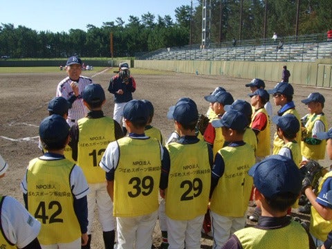 当協会の野球教室の特長は、ポジションごと(バッテリー、内野手、外野手)に複数の講師が指導にあたるなど講師数が多く、また、ひとりひとりに目を配るため、さも個別指導を受けているかのような体験をすることが出来る点にあります。指導者や保護者の皆さまも一緒にグラウンドに入っていただき、指導内容を一緒に勉強いただくとともに、選手たちが真剣にプレーする姿を間近に見ていただき、時にはアップに参加していただくなど、全員参加型の野球教室であることも特長のひとつです。