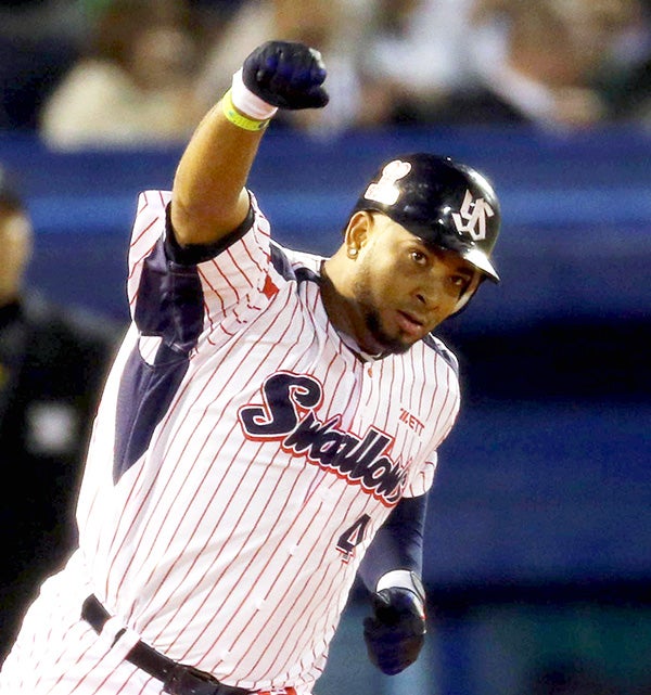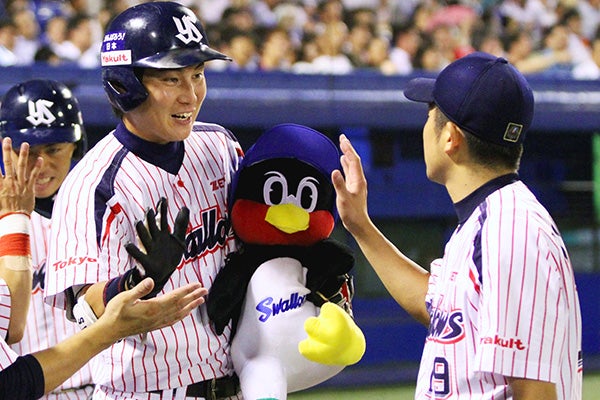 宮本 慎也 不動の遊撃手としてゴールデングラブ賞を10回受賞(三塁手としての受賞を含む)。打者としても、2001年に67犠打のシーズン日本記録を樹立し、2012年には2,000本安打を達成した。※在籍期間:1995~2013年、コーチ2009~2013年、2018~2019年 アレックス・ラミレス 来日1年目から主に5番打者として活躍しリーグ優勝・日本一に貢献。2007年には外国人選手・右打者として史上初のシーズン200安打を達成した。ホームランを放った後のつば九郎とのパフォーマンスはファンを喜ばせた。※在籍期間:2001~2007年 |