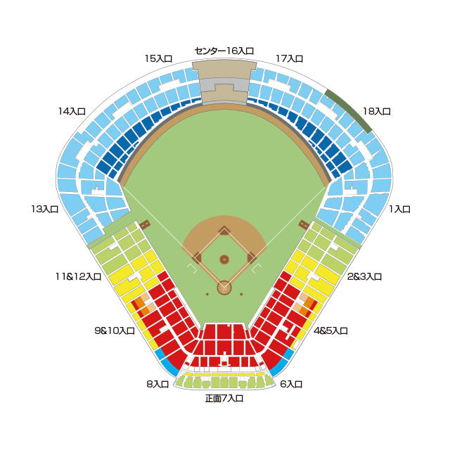 - 「見切れ席」は球場内に設置された支柱、壁、フェンス等の障害物によってグラウンドの一部が見えにくい、もしくは見えないお席になります。