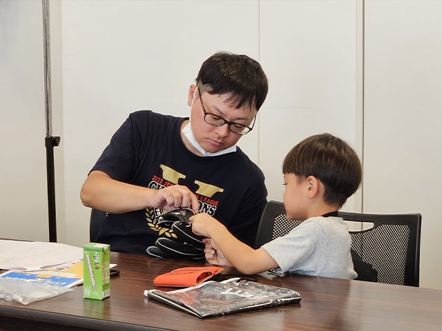 親子の夏休みの思い出に!共同作業でグラブ製作を体験しよう!