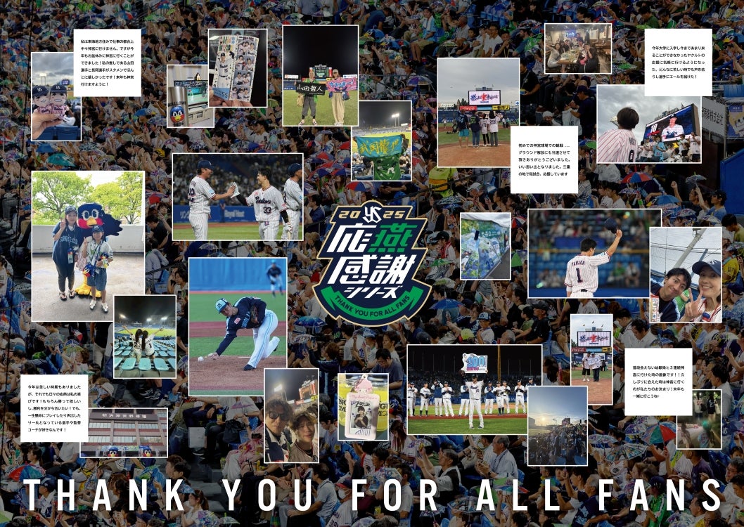お寄せいただいたメッセージと画像は、「応燕感謝シリーズ」当日に神宮球場のライト側外野席の球場に通じる階段3か所に展示中です。