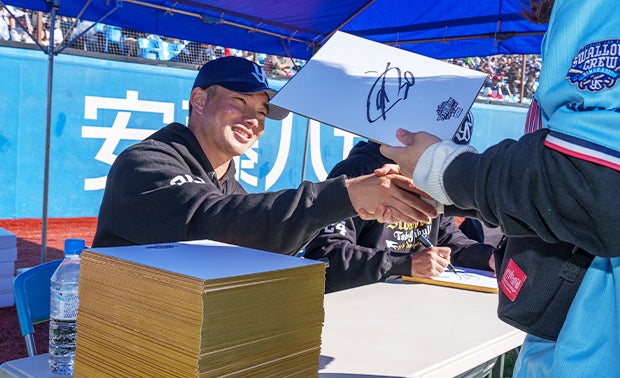 選手からサイン色紙をファンのみなさまに直接お渡しいたします。