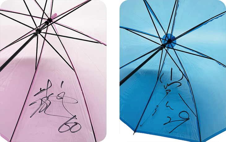 使用するアンブレラは選手のサイン入り!