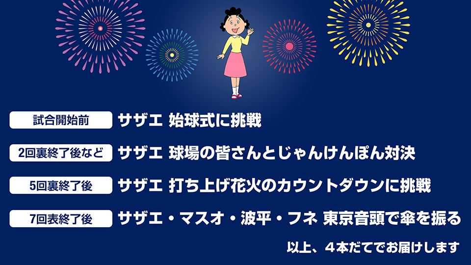 当日はサザエさん、マスオさん、波平さん、フネさんが神宮球場へやってきます!