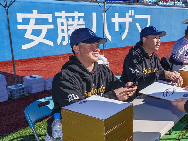 神宮球場開催試合で5回裏終了時までに来場ポイント端末から来場登録をしていただくと、抽選でサインボールなど豪華アイテムをプレゼント!
