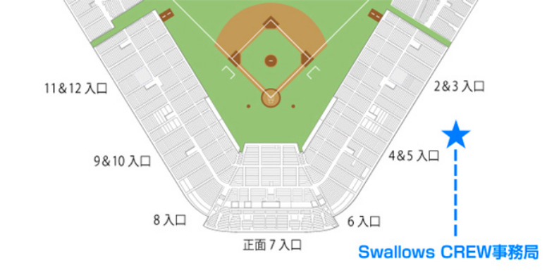 明治神宮野球場 4・5入口前のSwallows CREW事務局にて、スワレージアイテム交換やファンクラブに関するお問い合わせを受け付けております。