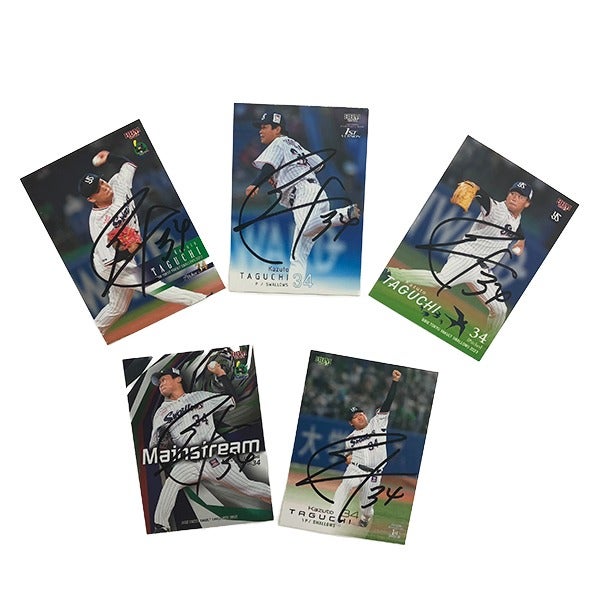 田口投手サイン入りBBMベースボールカード (ベースボール・マガジン社) 計50名様田口投手からのお年玉企画として、サイン入りBBMベースボールカードをプレゼント!(5種類のデザインから、1枚をランダムでお届け)※ポイント不要で応募できます※カードにはメーカー刻印やシリアルナンバーは入っていません
