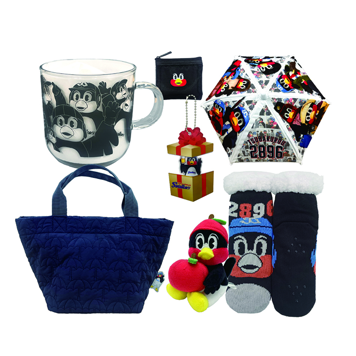 「2025年選手ファン感謝DAYセット」、「イラストロングTシャツ(by hico)」、「つば九郎フォトクル(キーホルダー)」、「村上宗隆Good Luckミニチュア応燕傘」は、Official Net Shop限定での販売です。