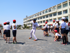 山部氏と河端氏が長沼小学校で投げ方指導! 野球で一番大事なこと