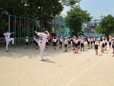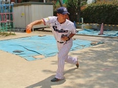 山部氏と河端氏が品川区立大原小学校で投げ方指導!
