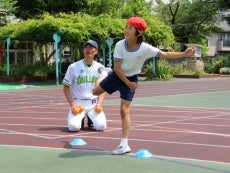 山部氏と河端氏が新宿区立落合第六小学校で投げ方指導!