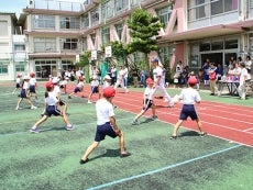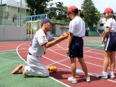 山部氏と河端氏が世田谷区立八幡小学校で投げ方指導!