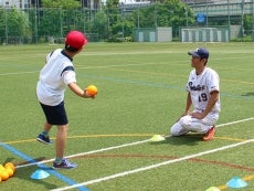 18日(火)、元選手で現球団職員の山部太氏、河端龍氏が東京都港区にある区立港南小学校を訪問。毎年春ごろに行われる「スポーツテスト」に向けて、児童たちへ正しいボールの投げ方を指導しました。