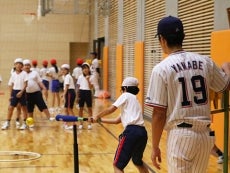 6日(金)と13日(金)、元選手で現球団職員の山部太氏、河端龍氏が東京都港区にある港区立小中一貫教育校白金の丘学園白金の丘小学校を訪問。児童たちへ打ち方の指導を行いました。