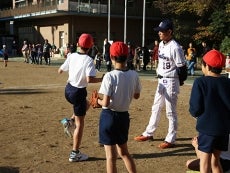 山部氏、河端氏、徳山氏が豊島区立南池袋小学校で投げ方指導!