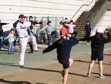 13日(水)、元選手で現球団職員の山部太氏と河端龍氏、今季限りで現役を引退した徳山武陽氏が東京都豊島区立南池袋小学校を訪問。毎年春ごろに行われる「スポーツテスト」に向けて、正しいボールの投げ方を指導しました。