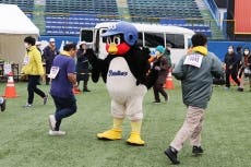 28日(日)、球団公式マスコットのつば九郎が明治神宮野球場周辺で開催された第16回新宿シティハーフマラソンに参加しました。