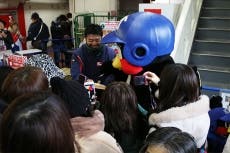 また、レースの合間には球場内のグッズ売店にも立ち寄り、自身のグッズが詰まった福袋やスピードくじを宣伝。つば九郎が現れると、お店は大盛況となり、相変わらずの人気ぶりを見せつけていました。