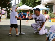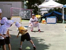 19日(火)、元選手で現球団職員の河端龍氏、徳山武陽氏が東京都品川区立浜川幼稚園を訪問。園児たちへ投げ方・打ち方の指導を行いました。
