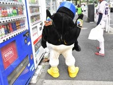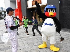つば九郎が外苑前駅付近での清掃活動に登場!