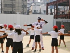 河端氏と徳山氏が江東区立扇橋小学校で投げ方指導!