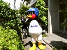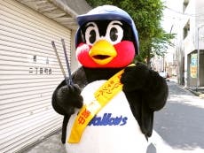 16日(木)、球団公式マスコットのつば九郎が東京都渋谷区にある青山キラー通り商店会付近にて清掃活動を行いました。