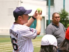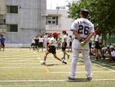 河端氏と徳山氏が港区立青山小学校で投げ方指導!