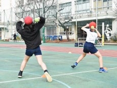 河端氏と三輪氏が新宿区落合第二小学校で投げ方指導!