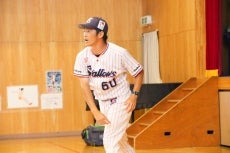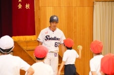 ヤクルト球団では、社会貢献活動の一環として、小学校での投げ方教室を実施。近年、小学生の投力低下が指摘されるなか、選手OBが東京都内の小学校で正しいボールの投げ方や遠投力を指導しています。