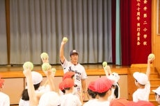 三輪氏が都内の小学校と保育園を訪問!約1400人の児童に対して投げ方を指導!