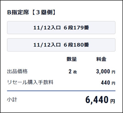 リセール購入手数料:リセール成立したチケット1枚につき220円(税込)