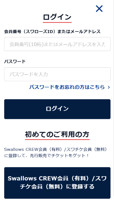 ※Swallows CREW会員(有料)、スワチケ会員(無料)いずれかの登録が必要です