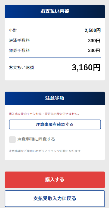 - 購入履歴にある引換票番号にてコンビニでチケット発券をしてください