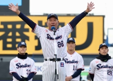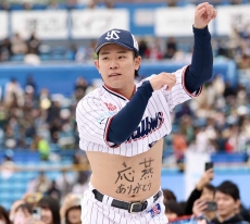最後にはチームを代表して、池山監督が登壇。「本日はたくさんのご来場ありがとうございました。改めてただいまです。さて、今シーズンはたくさんの応援にもかかわらず残念な成績でしたが私の頭の中ではもう始まっています。エースと4番、ダイヤモンドと開幕投手。今日は言えませんが、皆さんと一緒に戦う気持ちはいっぱいです。どうぞよろしくお願いいたします。その戦いに来年から一人いませんが、大きな穴が開いてしまいます。その穴をみんなの力で埋めまして、来シーズンこそは勝ちたい。東京音頭をもっと歌いたい。皆さんとともに喜びを分かち合いたいと思っています。」とコメント。さらに来季のスローガンをファンの皆様から公募することを明かし、「来シーズン、来年のスローガンの公募をします。沢山のご応募お待ちしております。」と呼びかけました。