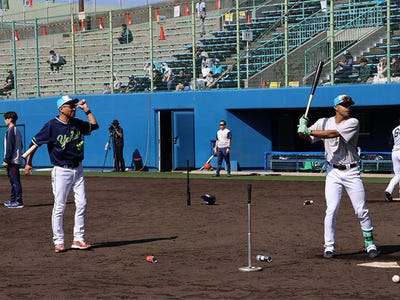 選手たちは全体でのウォーミングアップを終えると、投手陣はキャッチボール、ブルペンでの投球などを行いました。野手陣は、アジリティ、ベースランニング、キャッチボール、シートノック、バッティング練習を実施しました