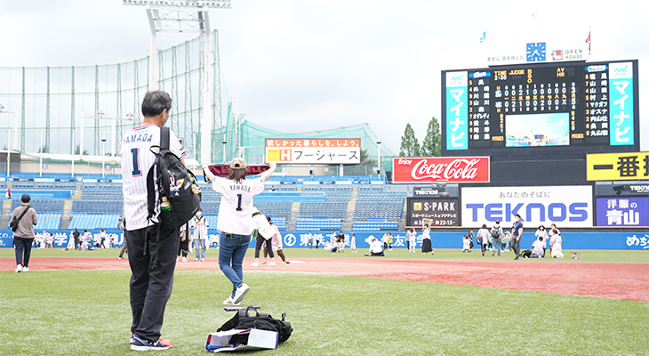 | 参加時の禁止事項 | ・人工芝やフェンスを汚したり、グラウンドを傷つけたりする行為 ・キャッチボールやスライディング、フェンスをよじ登る等の危険な行為 ・グラウンド内での飲食行為 ・スマートフォンを操作しながら歩く等、周囲への安全配慮が欠ける行為 ・その他、係員が危険と判断した行為 |