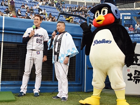 始球式の意気込み オープニングトークではこの後の始球式を務める株式会社アイム・ユニバース代表取締役社長の藍川眞樹さんがご挨拶。「今年は100キロ目指します!」と意気込みを語りました。 2017 4/21