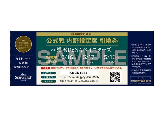 東京ヤクルトスワローズの年間シートでは、
